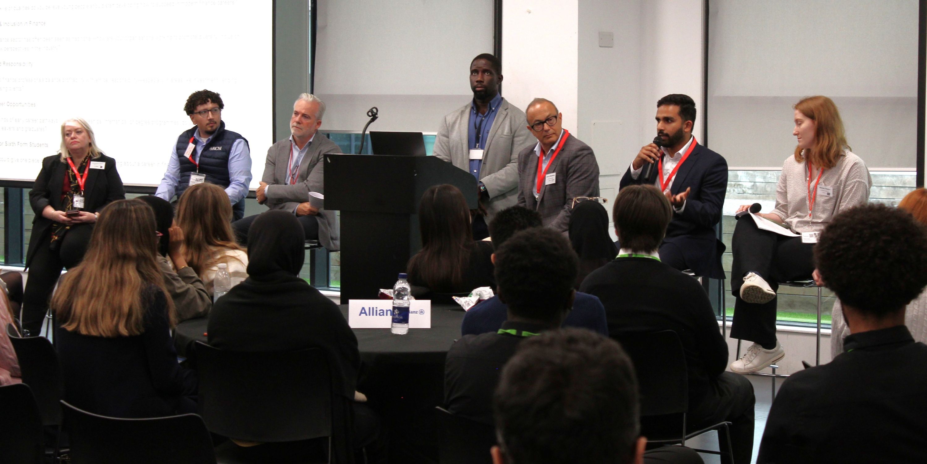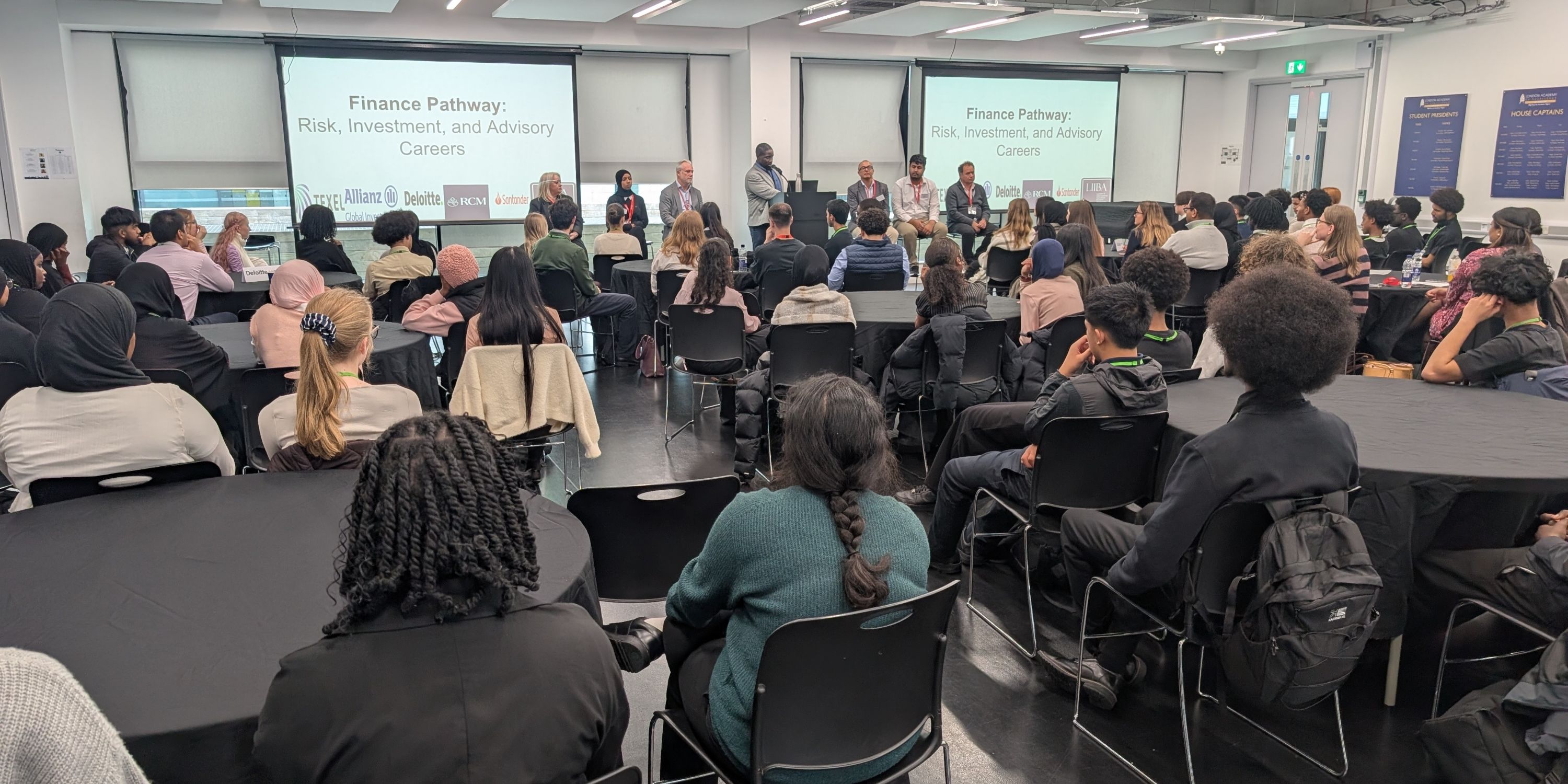 For the Finance Pathway launch, we were delighted to welcome a distinguished panel of speakers from leading organisations. The panel featured Andy Lennard, CEO of Texel; Sanal Mulackal from Texel, a regular attendee of our alumni networking events; David Newman, Managing Director and Head of Global High Yield at Allianz Global Investors; Guillaume Lenior from Santander; Bertie Viegas from Deloitte; and Jacqui Girow from LIIBA. We were also proud to include two of our own alumni from the 2025 cohort: Fadhail, now a degree apprentice at Santander, and Tariq, who is undertaking a degree apprenticeship at Rokos Capital Management. Each panellist brought unique perspectives on the finance industry and offered invaluable advice to our students.