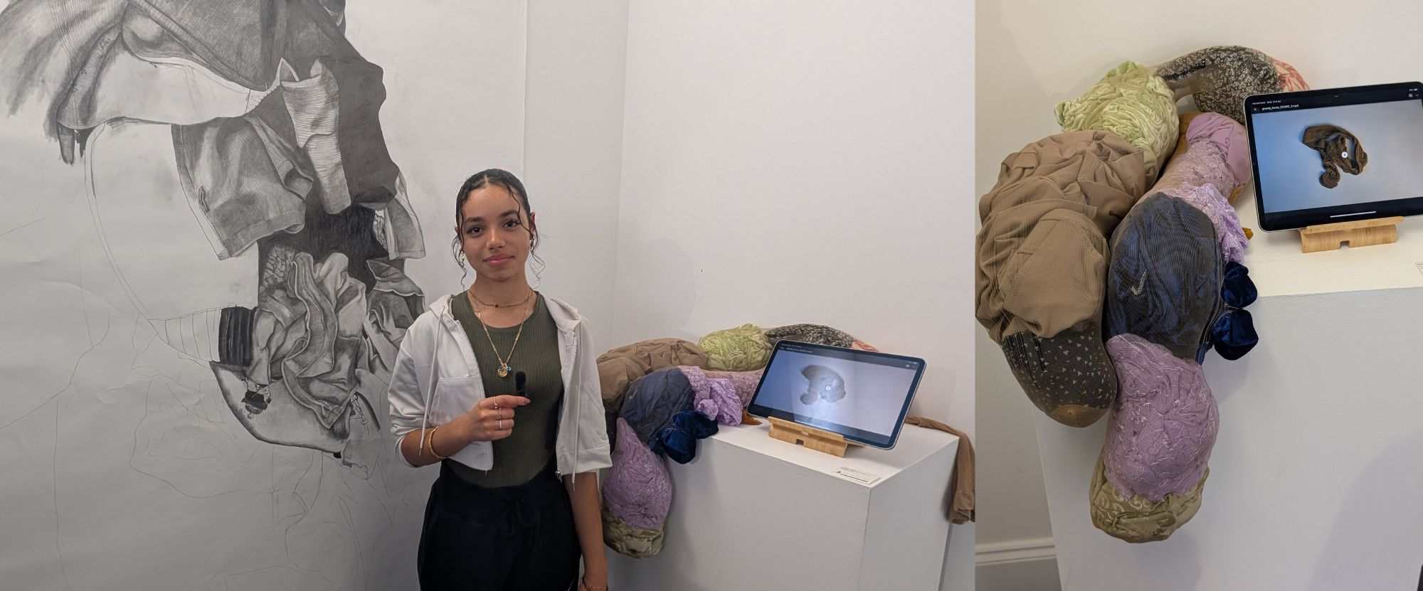 I decided to make these pieces because I wanted to explore how we consume so many clothes in our daily lives—how it builds up over time, ends up in landfills, and creates environmental impacts that we’re often not really aware of.