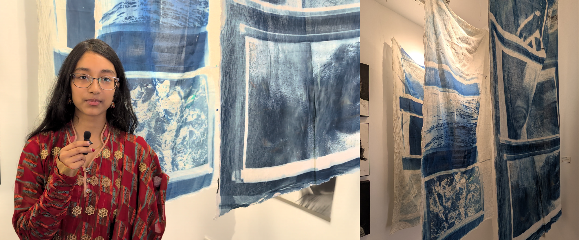 Hidden Connections: Zannatul Ferdaus experimented with cyanotype to reveal links between natural and manmade textures. “It’s very unpredictable…you never know what outcome you’re going to get,” she said of the process. Zannatul, who plans to study Architecture, reflected that working with installations has opened her up to “thinking about how structures and spaces can be made.”